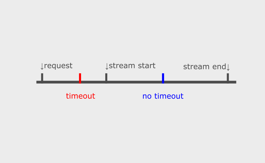 - If the stream starts before the configured timeout, no timeout occurs